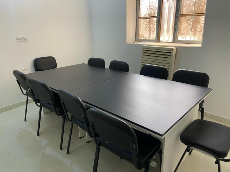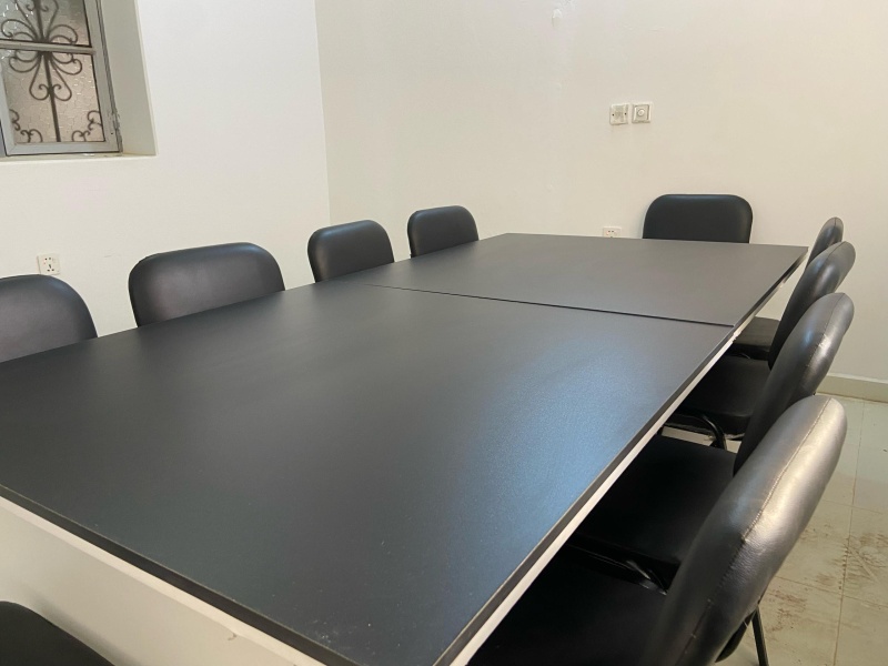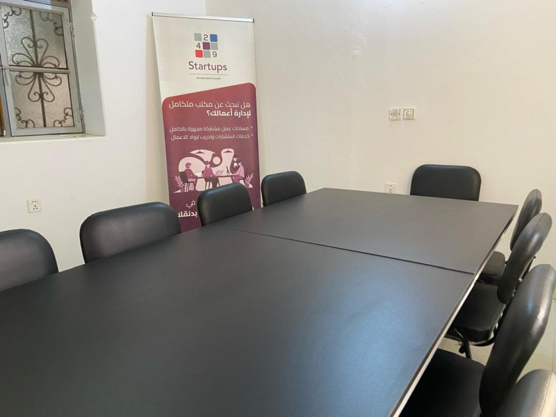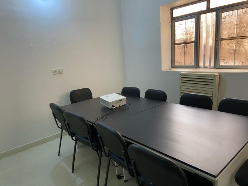 نوفر لك غرفة اجتماعات مريحة ومجهزة بالكامل تتسع حتى 10 أشخاص، متاحة للإيجار بالساعة.